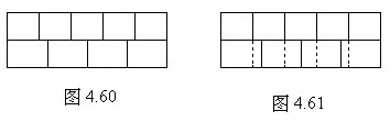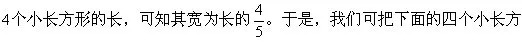 又如,“有9个长方形,它们的长、宽分别相等,用它们拼成的大长方形(如图4.60)的面积是45平方厘米,求大长方形的周长。”