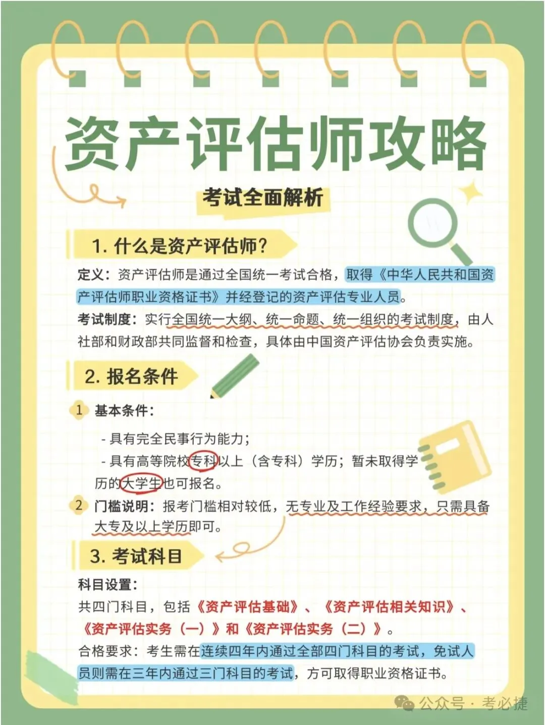 对于那些想要报考资产评估师的小伙伴们,这里有个好消息,资产评估师的报名条件非常宽松。专科以上学历就可以报考哦,而且不限专业、不限工作经验。这意味着无论你是刚毕业的大学生,还是已经在其他行业工作多年,想要转行或者为自己多增加一份竞争力的人,都有机会参与其中。这个低门槛的设定,就像是为大家敞开了一扇通往新机遇的大门,只要你有梦想,有学习的热情,就可以尝试迈出这一步!