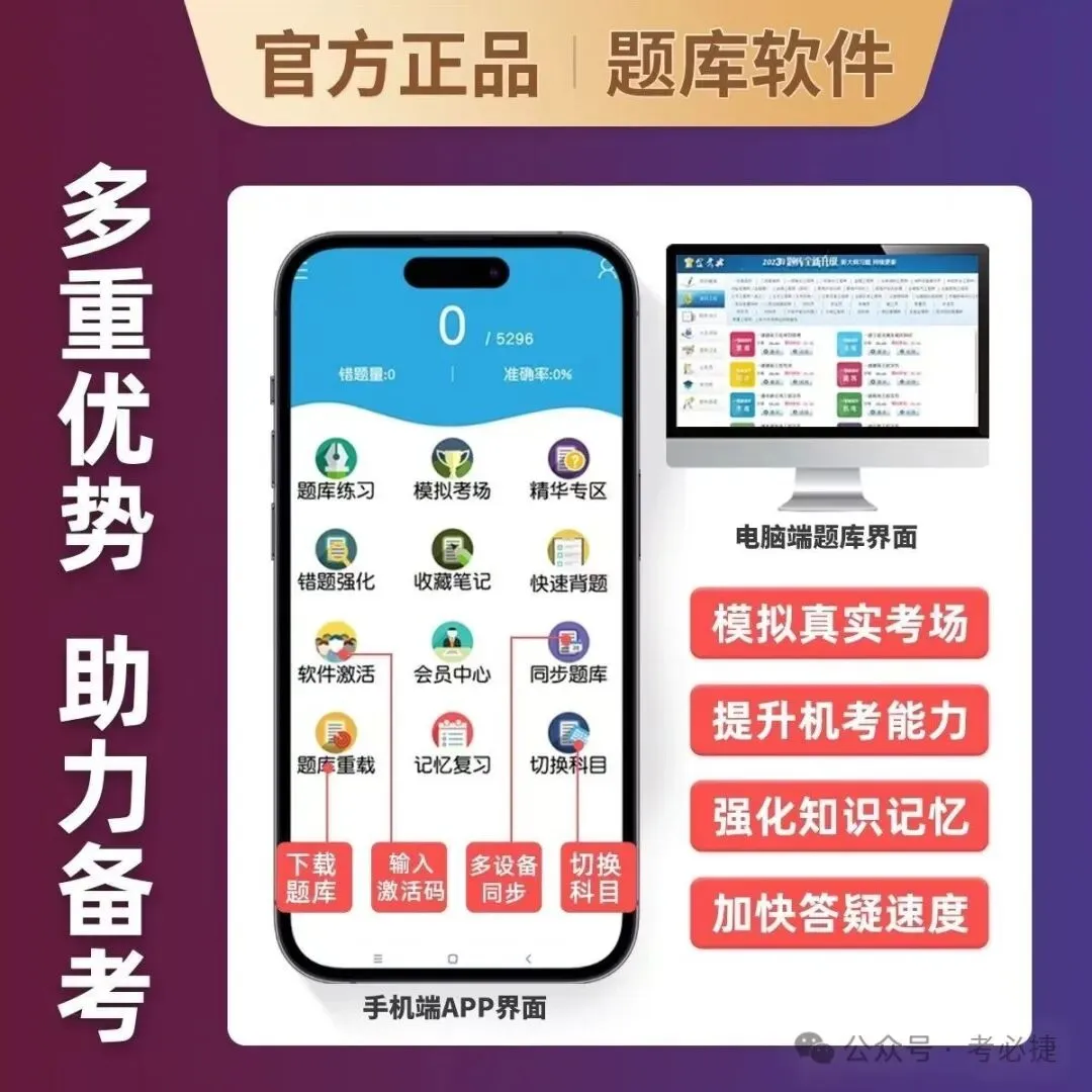 下载金考典app→找到所需科目→点【软件激活】→输入激活码。③ 4次激活次数,对应可以激活4台设备,每台设备仅需激活1次即可长期使用,题库实时免费更新。注意:没激活的情况下,只有第一章第一节能免费做题哦。需要激活码的同学,可添加客服微信1:JKD6898 微信2:CPIC2025 ,或扫描下方二维码直接添加好友购买,即可享受粉丝价格!激活过程有任何问题,都可以问我们客服哟~