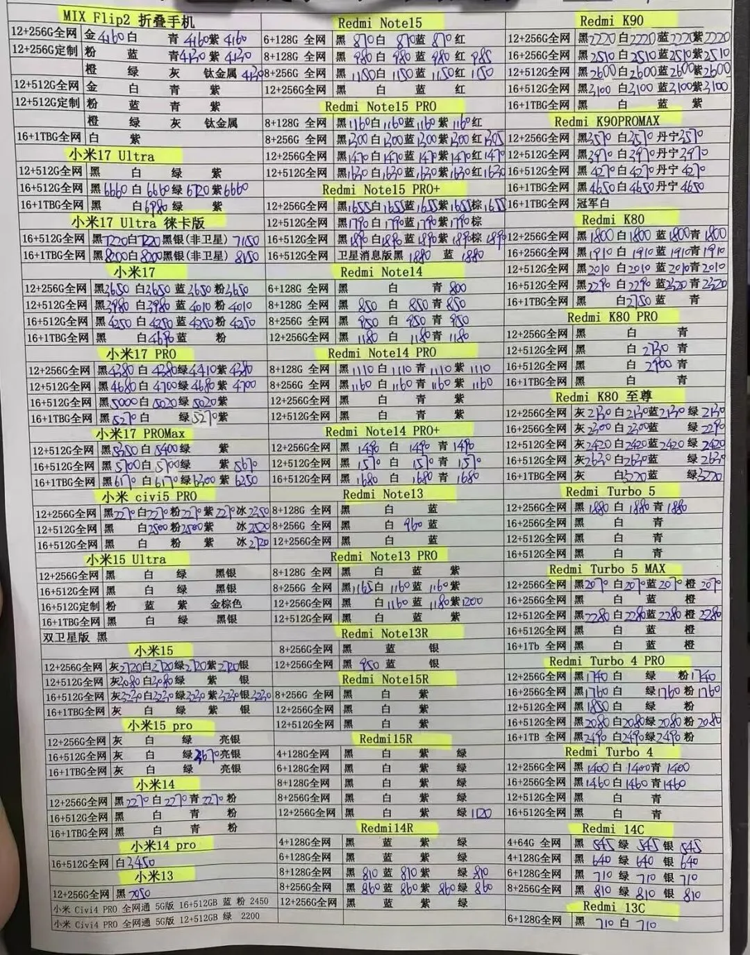 以下报价为深圳华强北商家交易底价,根据不同的提货量有相应的加价!零售:2500元以内的机器在报价的基础上每台加50;2500元以上的机器在报价的基础上每台加100