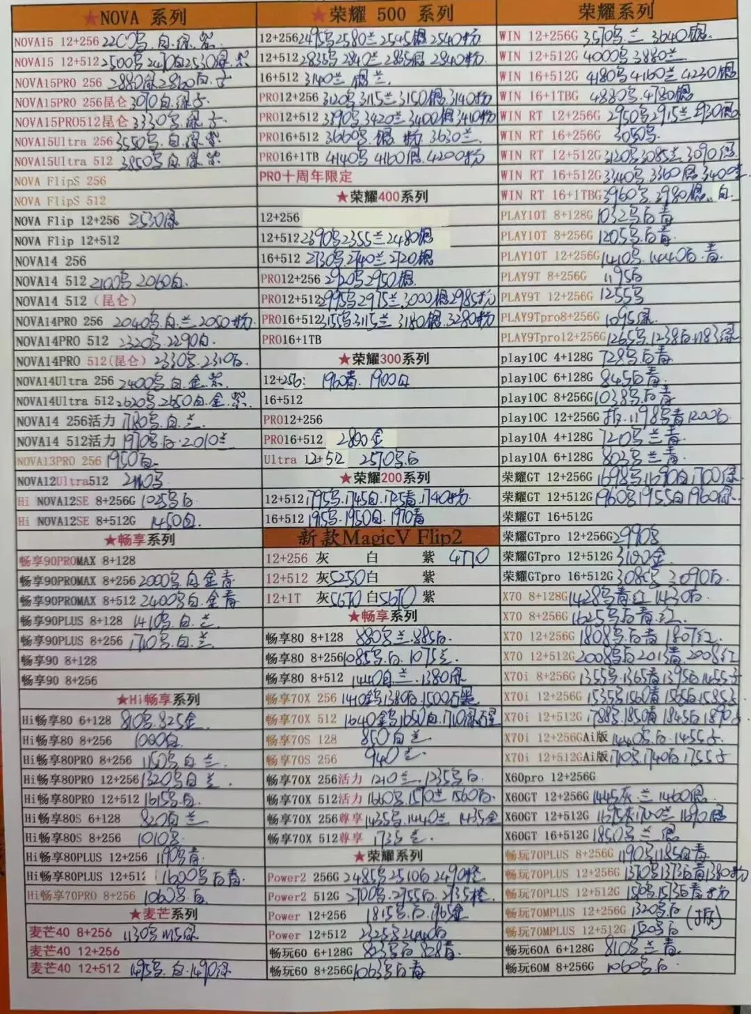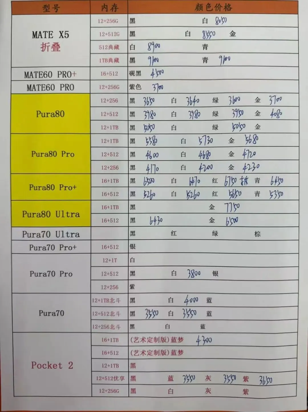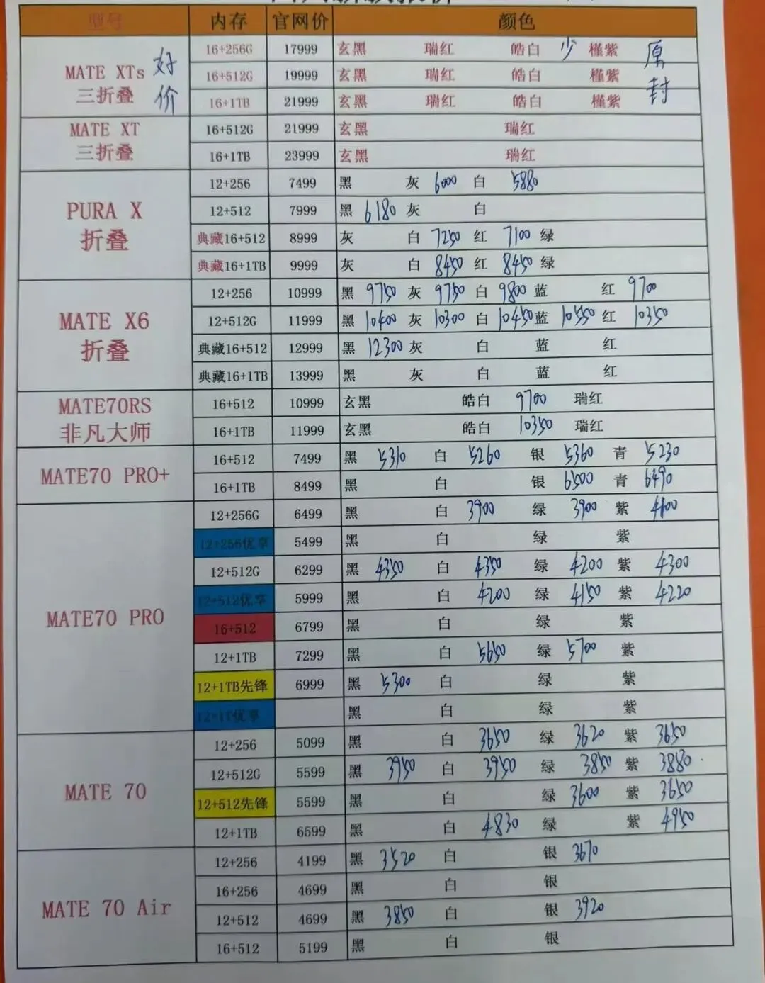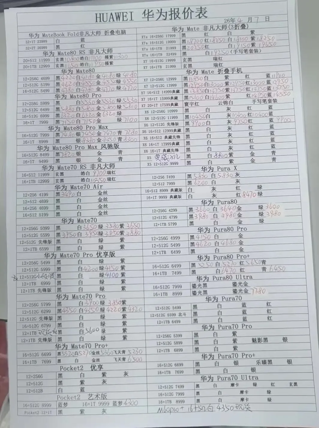 4月7日更新 全新华为MATE70,安卓三星荣耀 小米 OPPO机器一系列报价