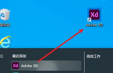7.在开始菜单中找到”Adobe XD“软件,并拖拽到桌面上即可创建桌面快捷方式