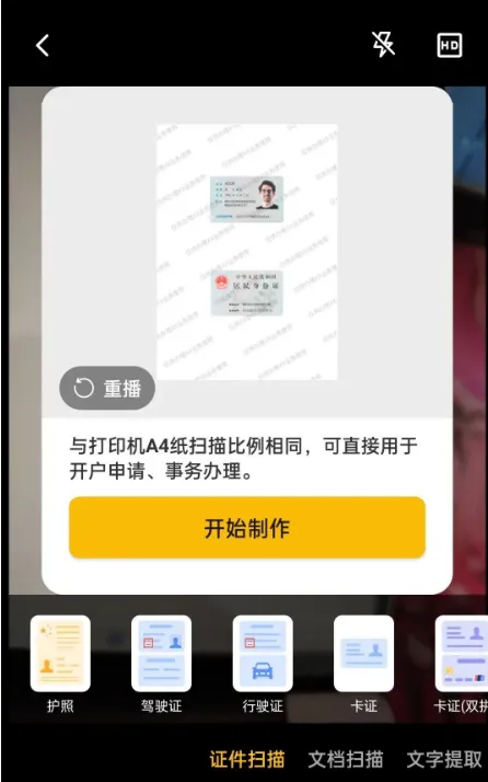 证件扫描:支持多种证件类型,自动排版到A4纸,可添加水印。身份证正反面合成一页这个功能,太省事了。