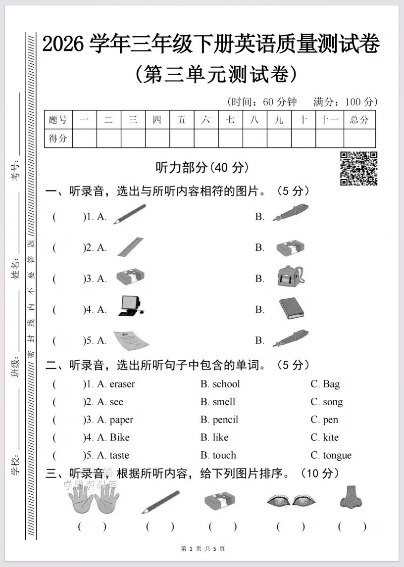 今天玥琳麻麻分享的是小学《三年级下册英语第三单元测试卷 》。资源纯属公益分享,无广告、无套路,即拿即用,省时省力。欢迎转发教师群、家长群和朋友圈,助力更多的需要的群体,一起陪孩子成长、拔尖!