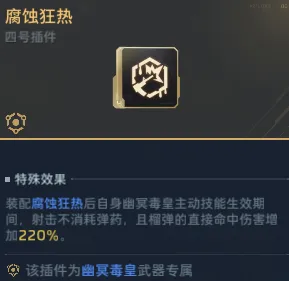 专属插件就是无限榴弹,但没有增伤插件,伤害不是很高,清怪比之前费劲了,但如果选择了伤害,续航就跟不上~