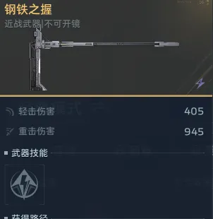 新塔防武器不是体验服的“武装斧头”,而是一把名为 “钢铁之握”的金色武器,他是由紫色品质武器直接升级而来,疑似临时提升充数。提供远距离增伤和电属性增伤,强度一般,设计上也缺乏新意,略显敷衍,为什么不上拳套呢?