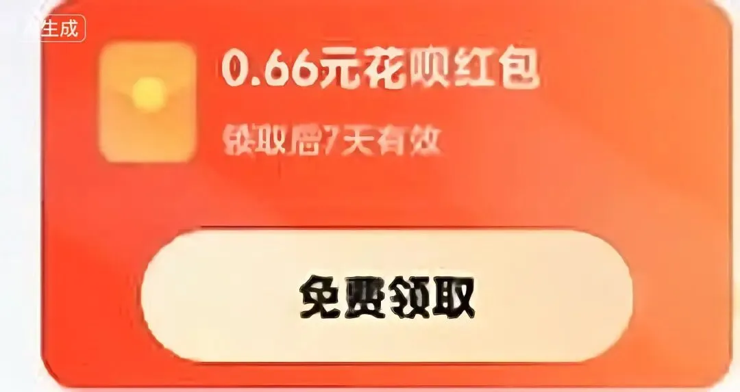 即可弹出花呗红包的领取页面。无论是日常购物、餐饮消费还是其他任何支持花呗支付的场景,这个红包都能为你减轻一些负担。
