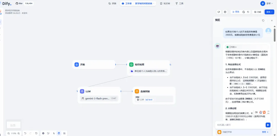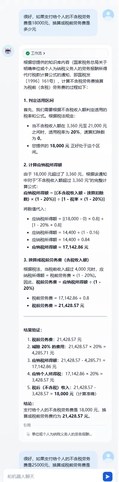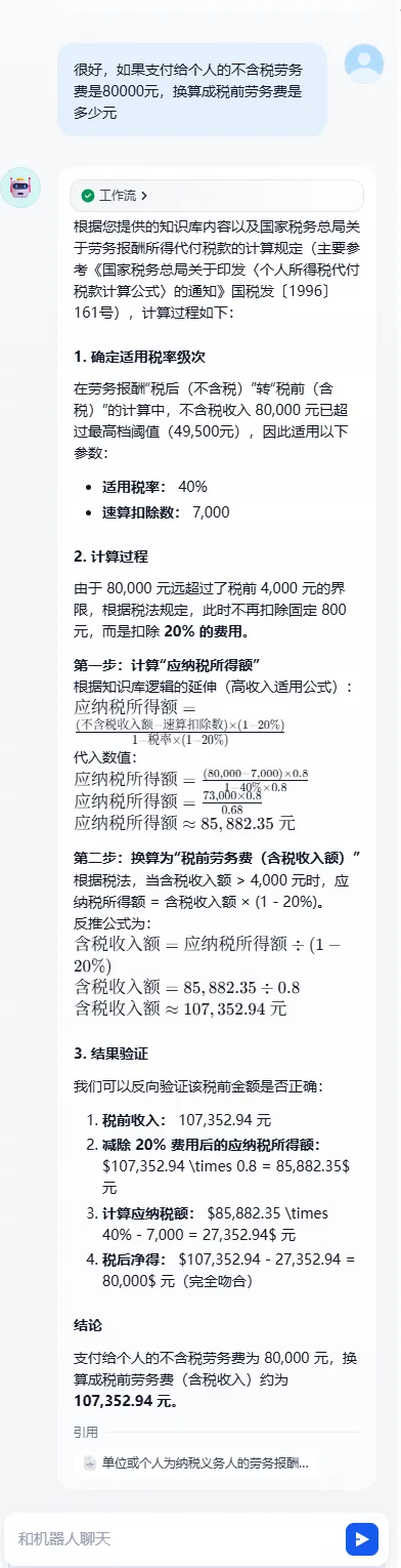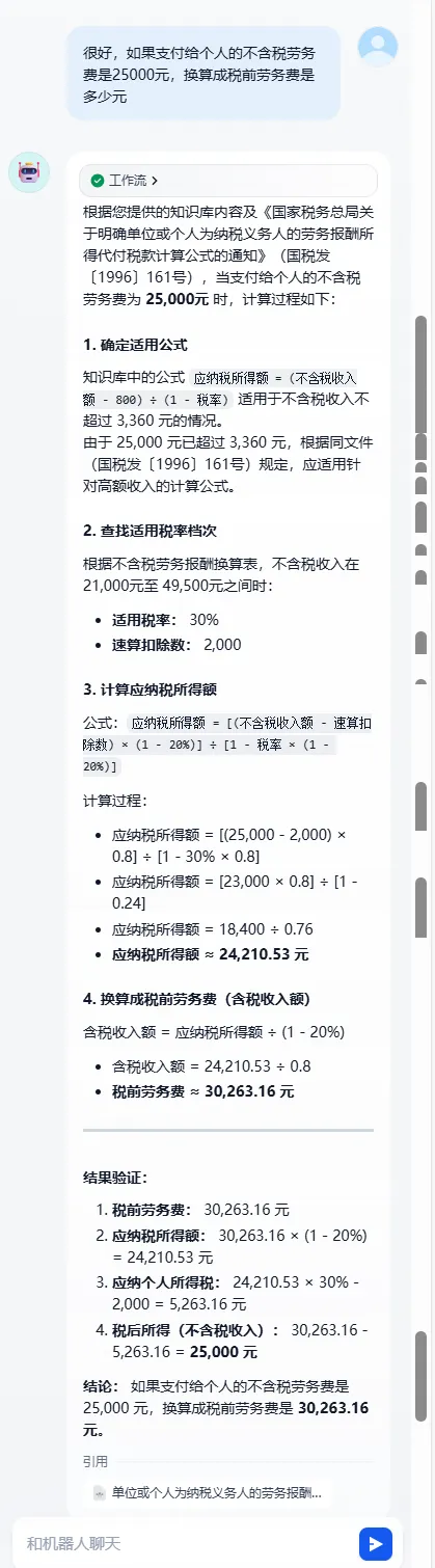三、请工作流计算税前劳务费金额,工作流先调用知识库中税法的规定,结合他知道的快速准确计算。