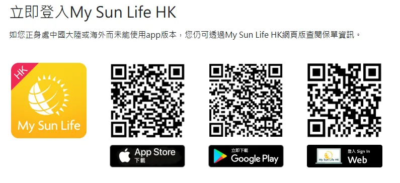 苹果手机用户:可以直接扫描下方二维码下载,或者直接在App Store 搜【My Sunlife HK】下载。