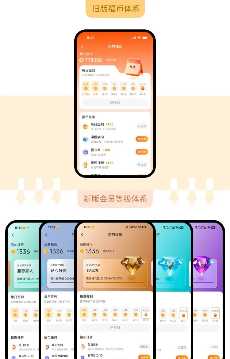 2、新增会员等级体系,通过增加福气值(最大福币数)提升