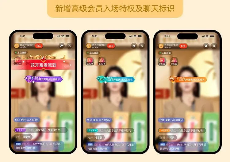3、新增高级会员入场特权及聊天标识