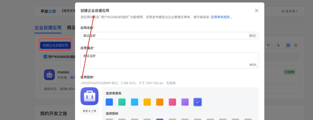 第二步:点击开发者平台,创建企业自建应用