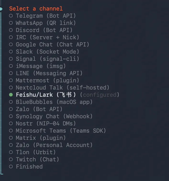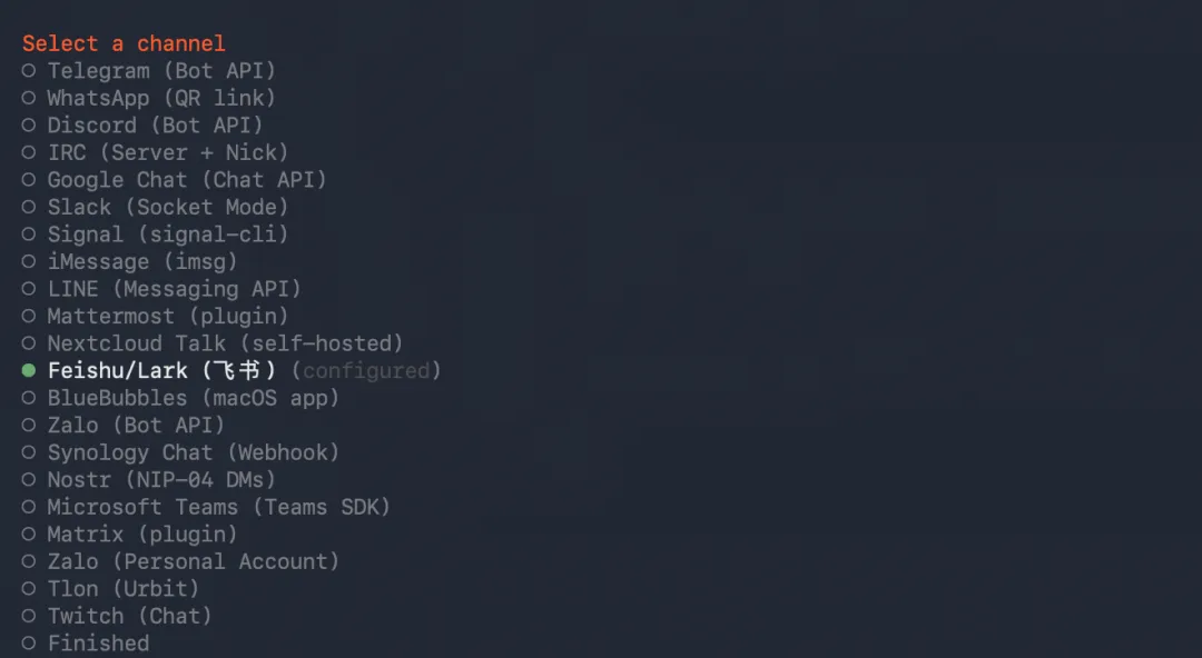 最终选择finished即可配置好了飞书。