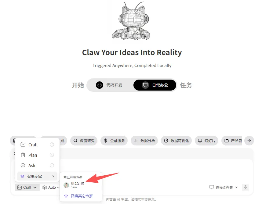 里面有个专家库,用下来确实还不错,新建一个任务,召唤UI设计师,然后就可以施展魔法了