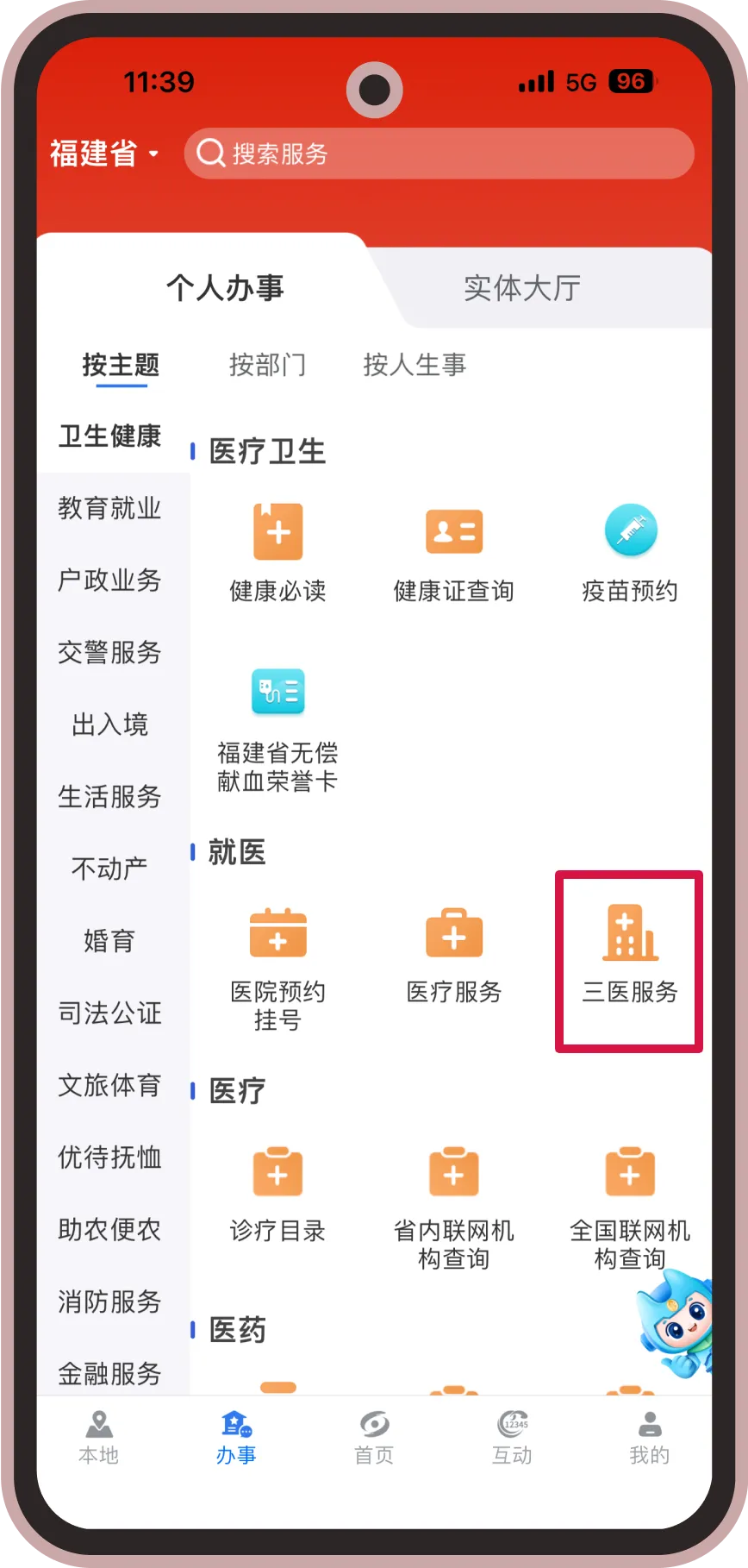 聚焦与企业和群众生产生活密切相关的高频服务事项,以20%高频服务满足80%用户需求。“闽政通”集中打造了一批关系企业和群众切身利益的热点服务应用,涵盖了医保、社保、公积金、公安、教育、交通出行、卫生健康等领域,方便企业和群众全流程网上办理。在“首页”版块上线了395项高频服务应用,各地又结合本地实际,在“本地”版块另外推出了374项高频便民服务应用。特别是,在卫生健康模块新增了“三医服务”,实现131家二级以上公立医疗机构线上预约挂号和266家医疗机构检查检验查询互认;在“本地”版块各地均接入了公交地铁应用,提供实时公交查询、乘车等服务。