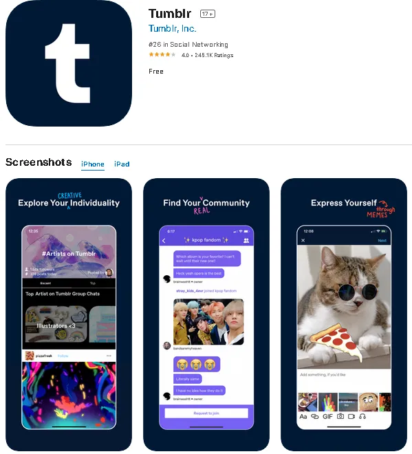 软件名称:Tumblr(汤不热)