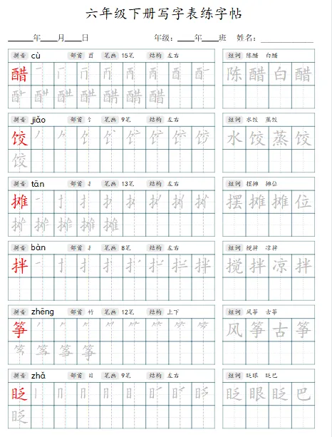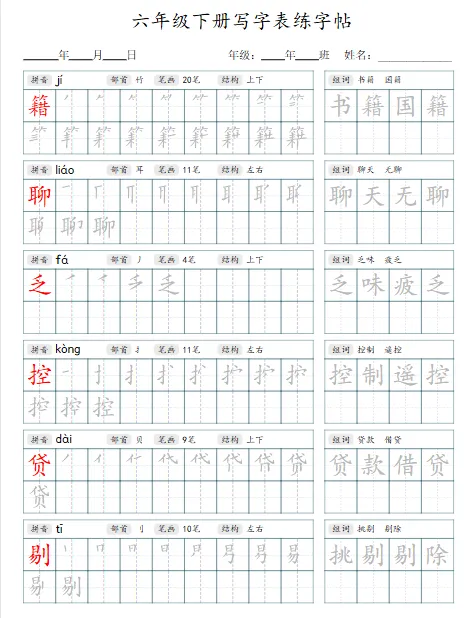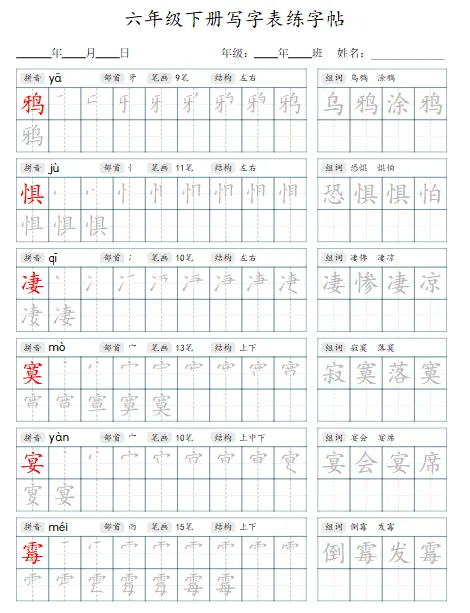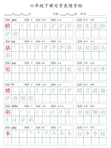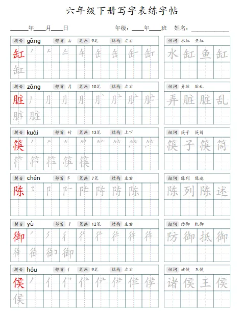 小学语文1-6年级下册《写字表练字帖》|可下载打印 点击上方“生活小窍门”↑↑↑关注我 版面有限,不过多展示 需要直接拉至文末下载 完整电子打印版免费领取方式 ▲点击上方 语数英父母学堂 在公众号消息框发送: 5385,即可免费领取