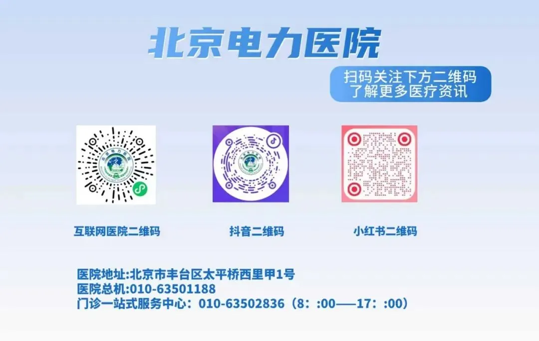 关注北京电力医院公众健康号,就医不迷茫,我们一直陪在您身边!