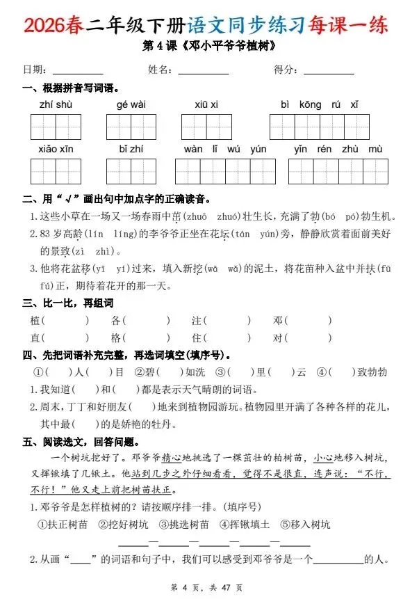 复习建议:从今天(4月7日)起,每天完成一课,配合教学进度,到4月底刚好能系统复习完前半本书,面对期中考试自然更有底气。积少成多,效果看得见!
