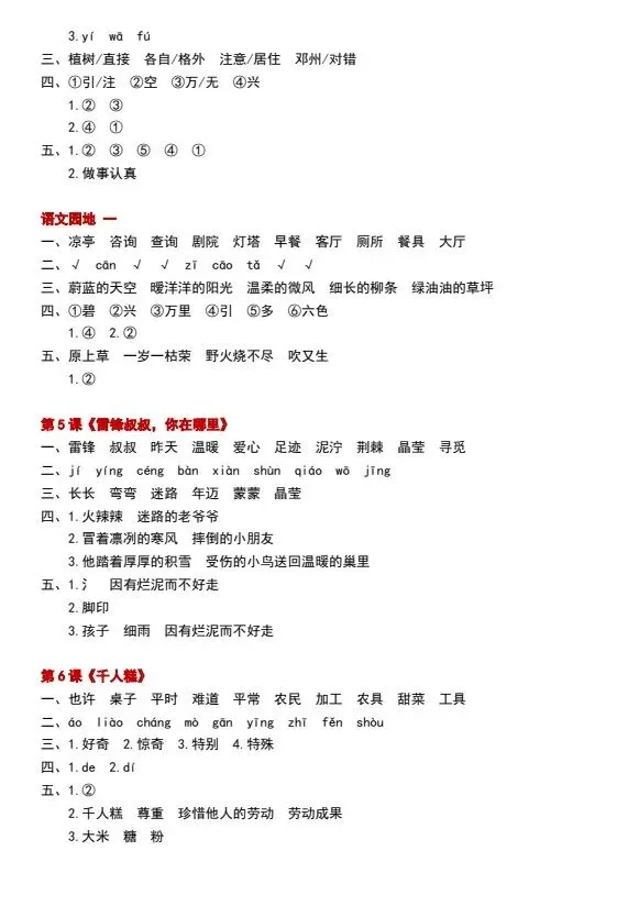 二下语文一课一练|期中复习专用(有答案可打印)