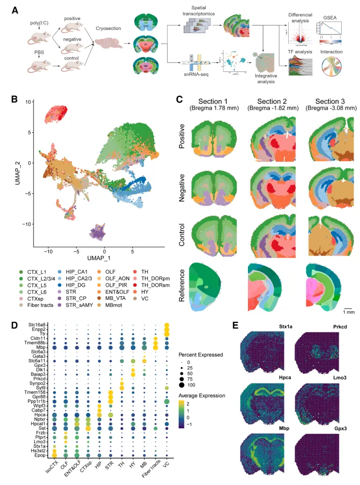 1、MIA 子代和对照小鼠大脑的空间转录组学分析。