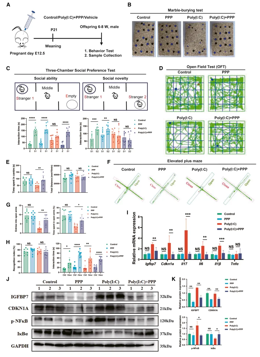3、功能验证:用 IGF-1R 抑制剂 PPP 对 MIA 模型做产前干预,通过行为学实验验证 ASD 样表型逆转效果,再用 qPCR/WB 验证靶点及通路表达变化。