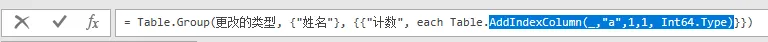 将 RowCount(_), Int64.Type 改为 AddIndexColumn(_,”a”,1,1, Int64.Type)