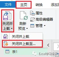 9. 选择菜单栏的“主页”–>“关闭并上载”–>“关闭并上载至”