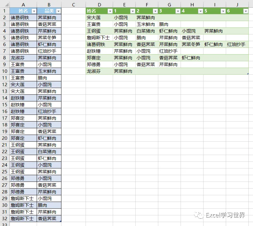 Excel 纵向对一多数据表,转换成横向一对多,有没有简单的方法?