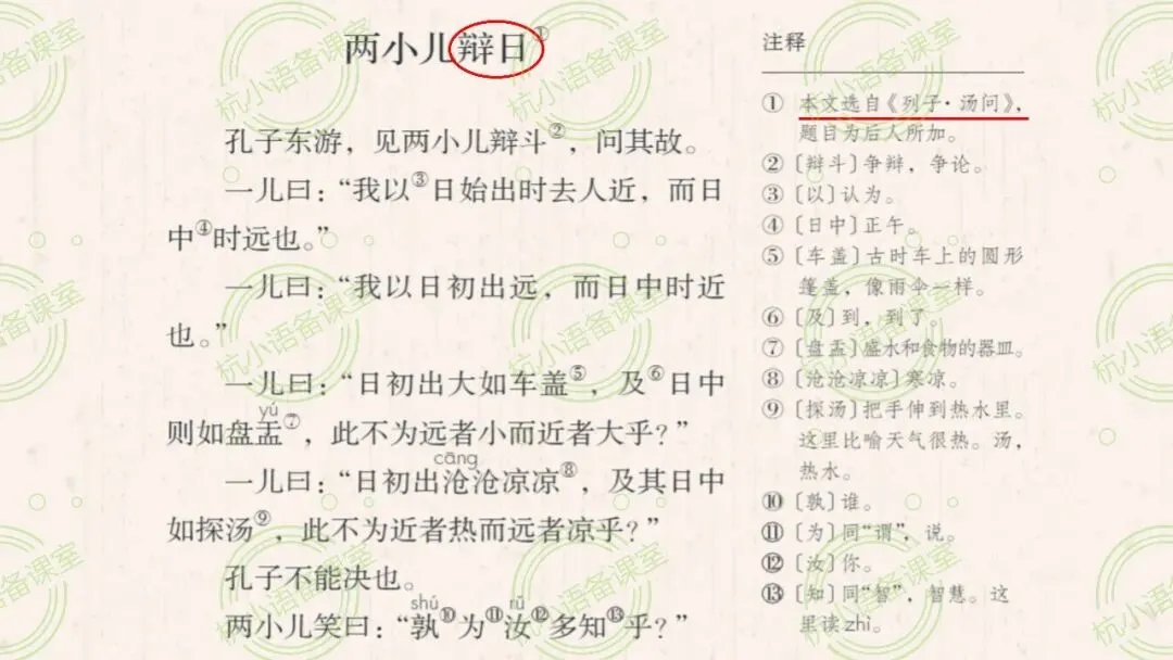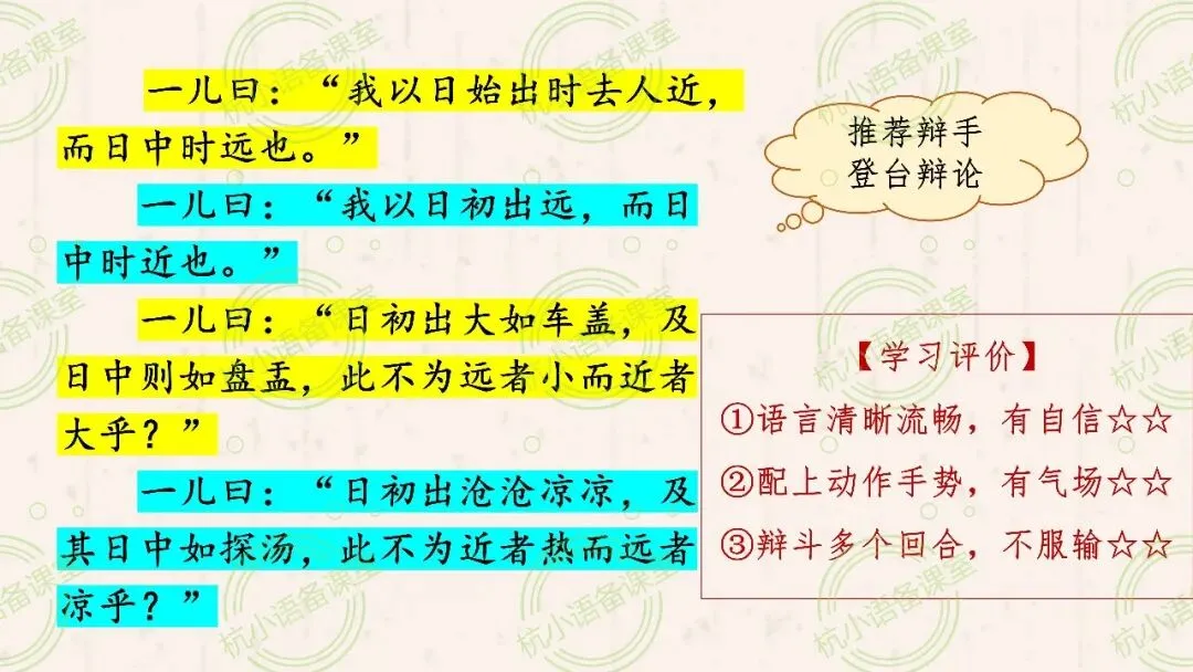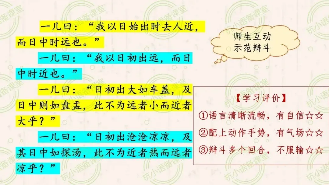 【备课分享】体会文章是怎样运用具体事例说明观点的 | 统编六下《两小儿辩日》教学设计与课件