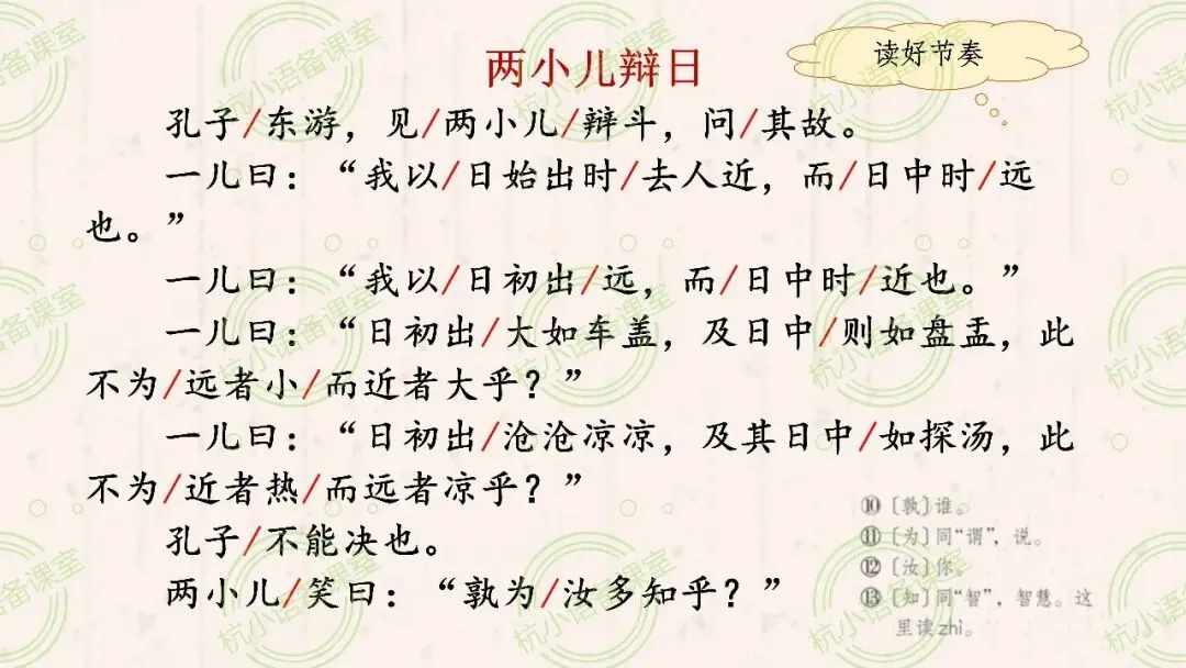 (1)辩论,肯定有一个主题。那么两小儿辩论的主题是什么呢?