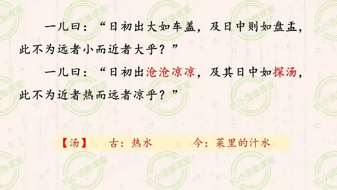 那么,同样一个太阳,为什么两小儿会得出完全相反的观点呢?你发现了吗,他们观察思考的角度有什么不同?
