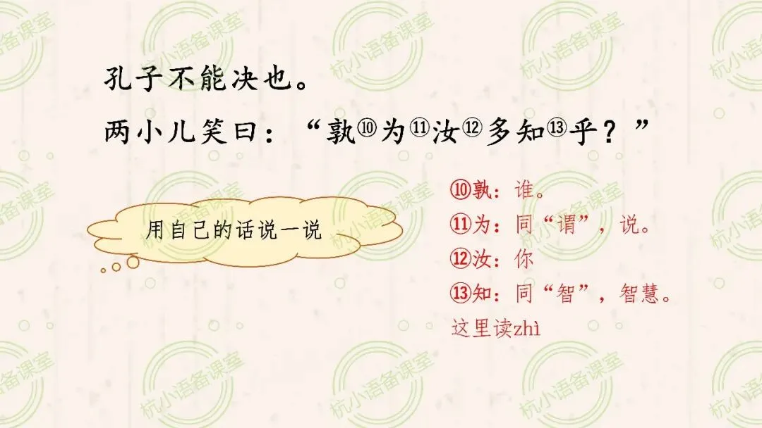 两小儿笑曰:“孰为汝多知乎?”