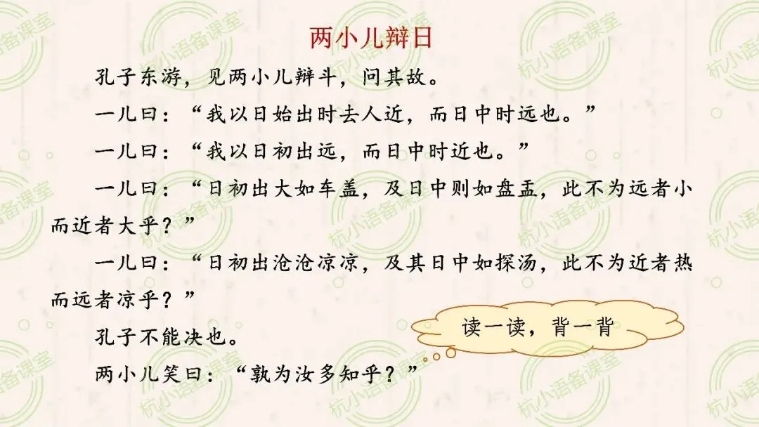 3.读一读,背一背《两小儿辩日》。
