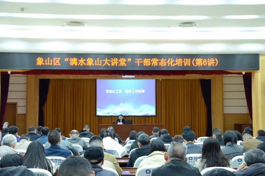 2026年3月31日下午,象山区举办“漓水象山大讲堂”第6讲,区委常委、组织部部长唐启源以“驾驭AI工具 提升工作效率”为题作专题授课。