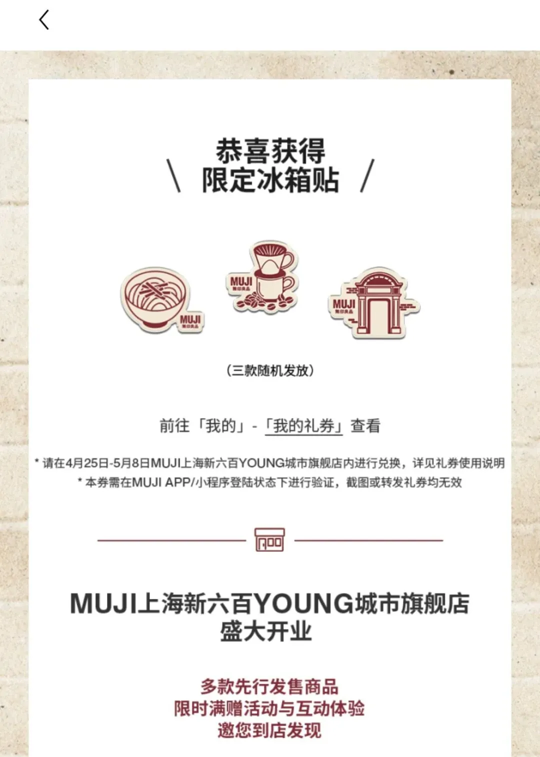 上海限定 MUJI无印良品app 抽冰箱贴