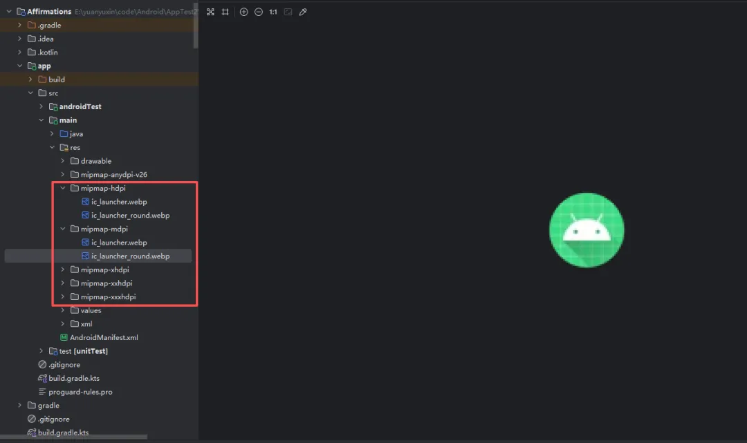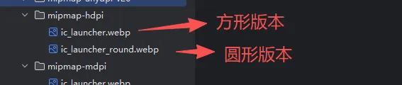 那最后再解释一下,为什么xml文件存在后还需要生成不同的位图,搭载 Android 8.0 或更高版本(API 26 及更高版本)的设备上,系统可以使用自适应图标,在搭载 Android 8.0 以下的任意版本(但高于您的应用所需的最低 API 级别)的设备上,系统将使用旧版启动器图标(位于不同密度级别的 mipmap 文件夹中的位图图片)。