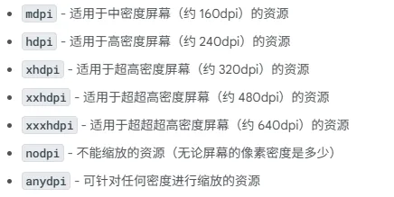 这里提一嘴,图片有两种格式,矢量可绘制对象文件和位图。矢量图形可针对任意屏幕密度的任意画布尺寸进行缩放,而不会损害图片质量,因而是理想之选,但是如果我们使用的是照片,很难用一系列的形状来描述,在这种情况下,使用位图资源会更加有效。