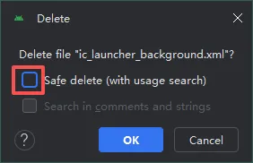 Safe delete (with usage search) 功能会通过搜索代码来找出要删除的资源的使用情况。