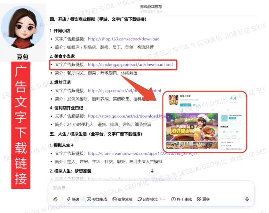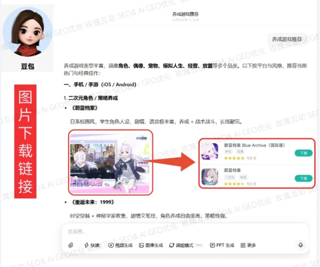 豆包GEO:嵌入品牌APP推荐+广告跳转链接 品牌曝光&下载量双丰收
