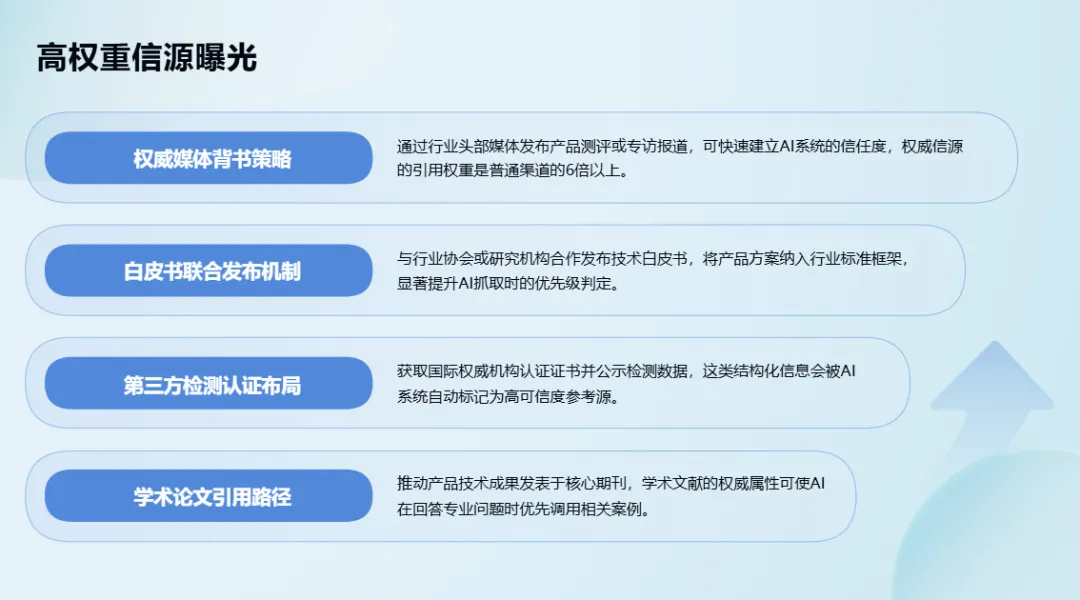 光在自家官网自说自话,AI不太爱搭理。你得让产品信息出现在行业白皮书、权威检测报告里,AI才会给你加分。