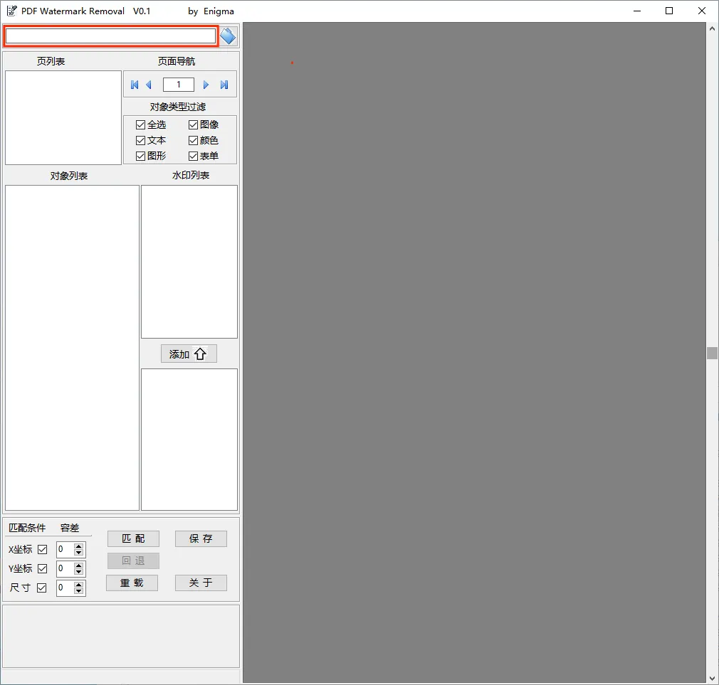 软件通过读取页面上的部件对象,按照图像、文字等类型分类,可以通过选中、匹配的方式,将选中页面上的同种水印去掉