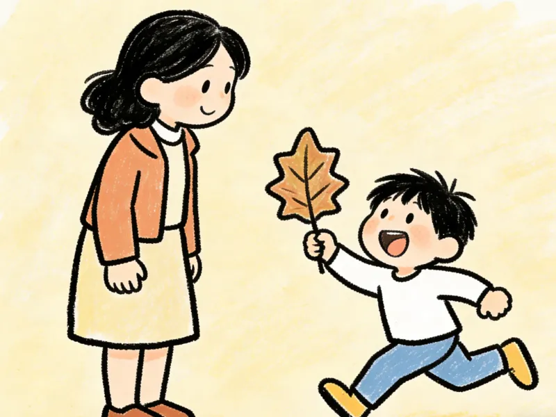 第二句:“妈妈你看,这片树叶好好看!”