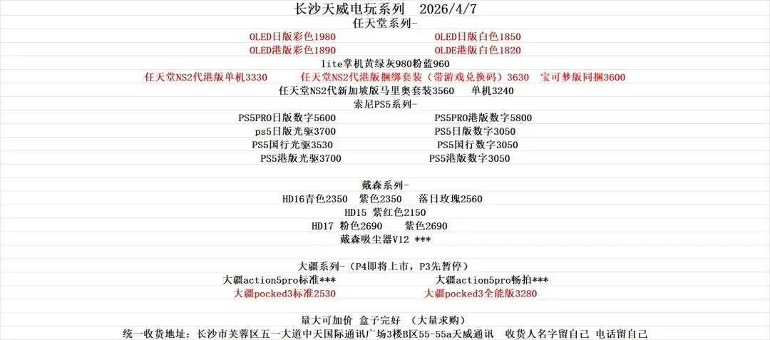 苹果安卓国产手机戴森任天堂长沙回收地址:湖南省长沙市芙蓉区五一大道中天国际通讯广场3楼b区55天威通讯