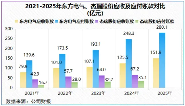 一个数据表明一切,2021-2025年,东方电气应付账款逐年攀升,并始终高于应收账款,侧面表明公司对上游议价能力强。