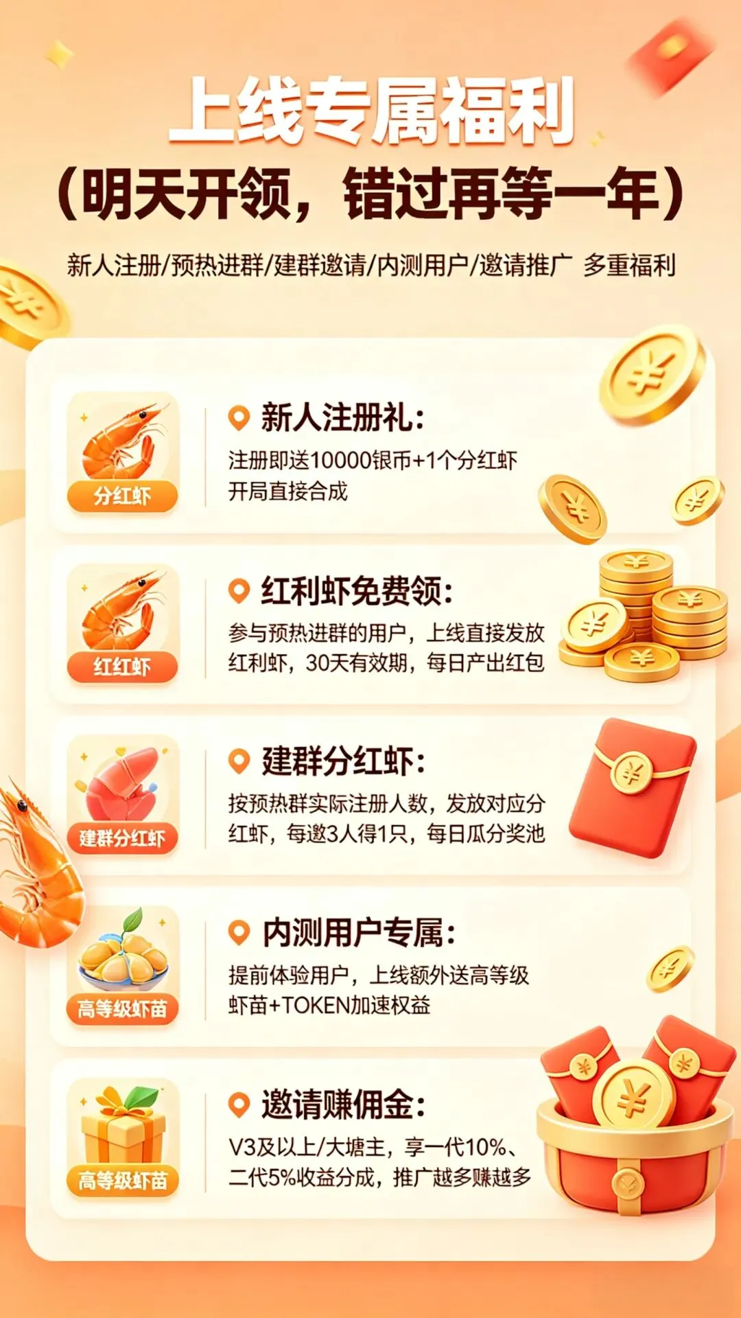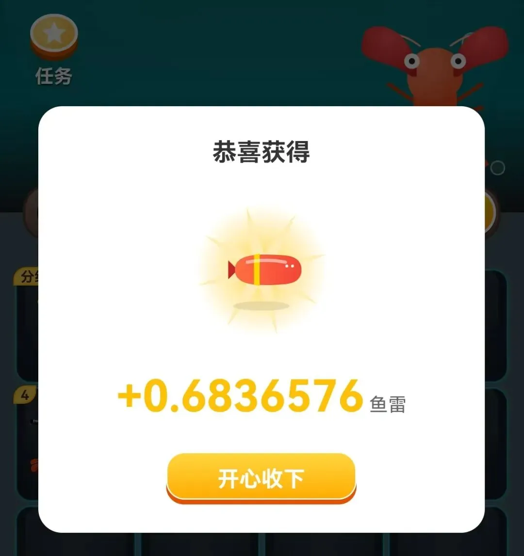 等级越高,虾外出寻宝获得的现金红包、平台代币越丰厚 -