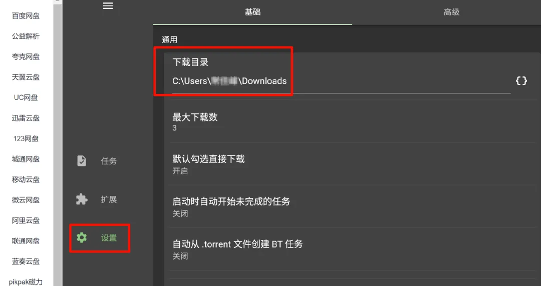 5、设置里面可以查看下载目录,默认是在c盘,建议修改成其他磁盘,防止把c盘变红了。