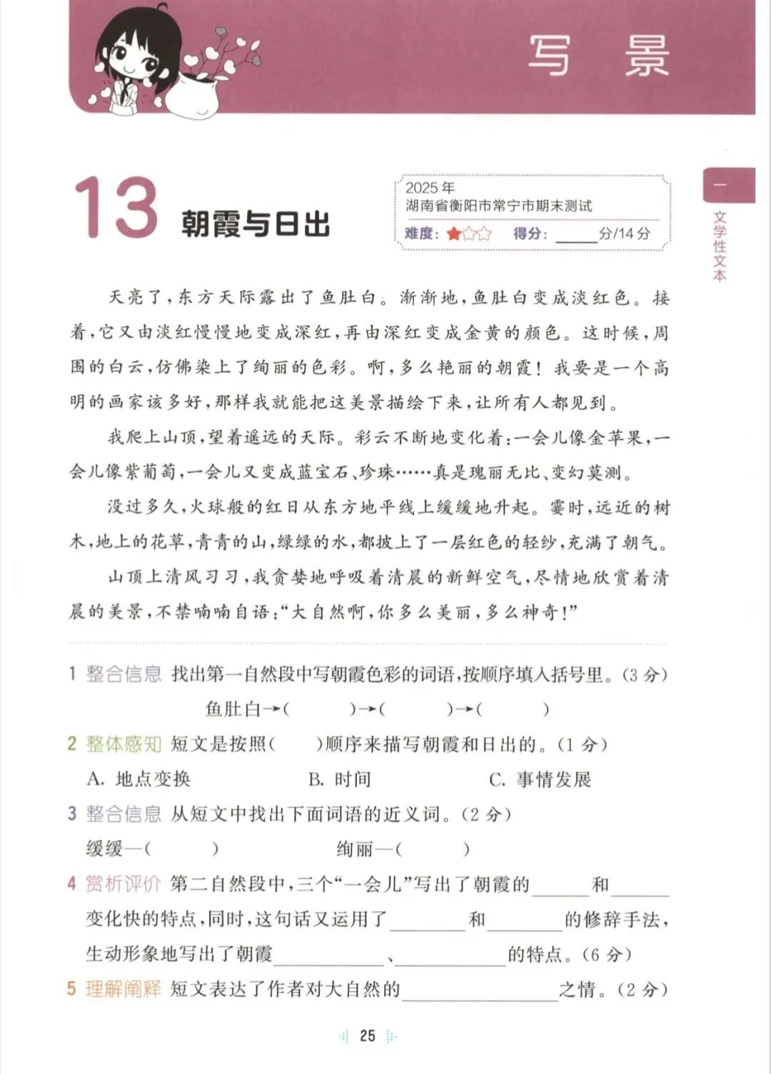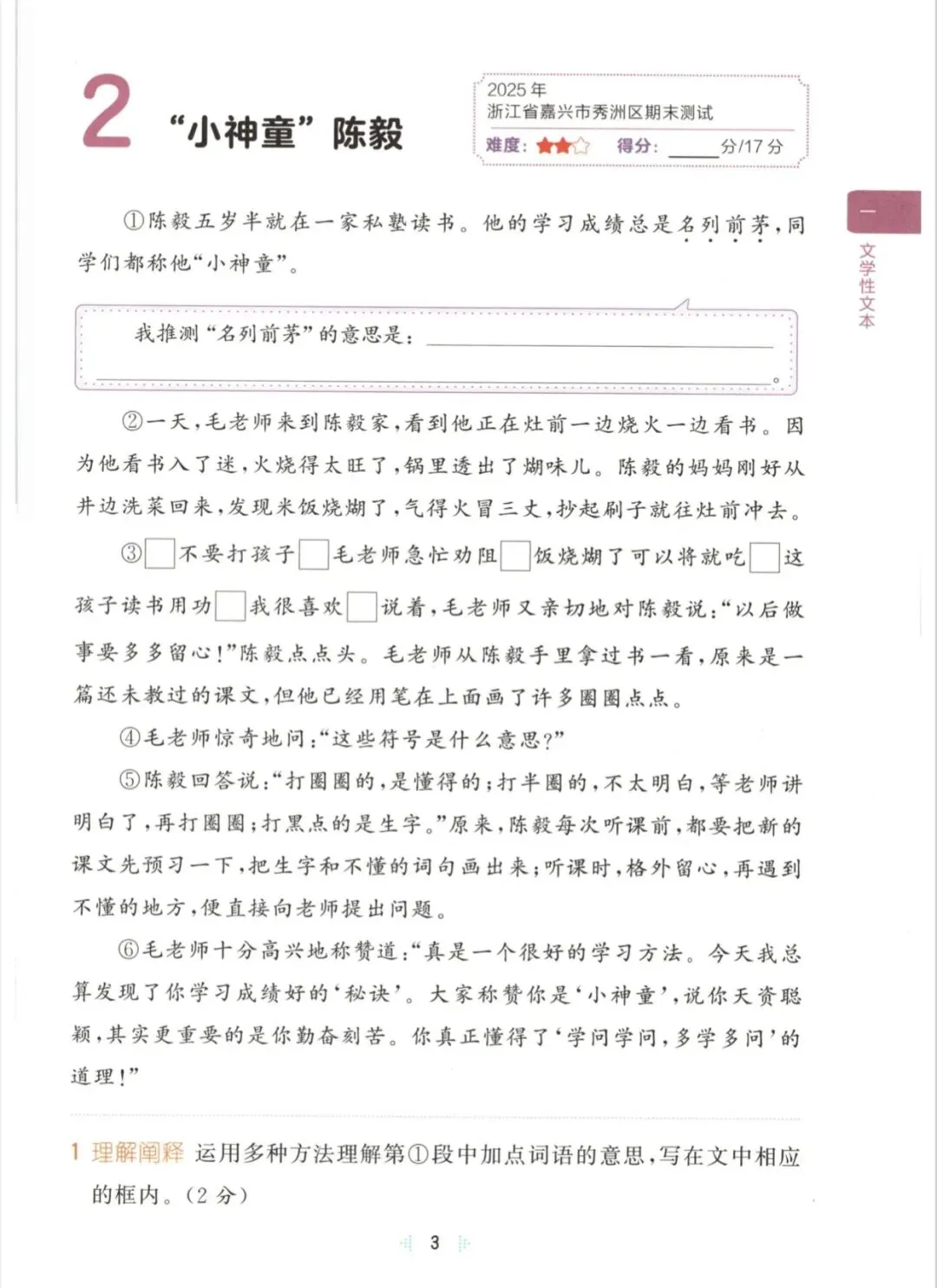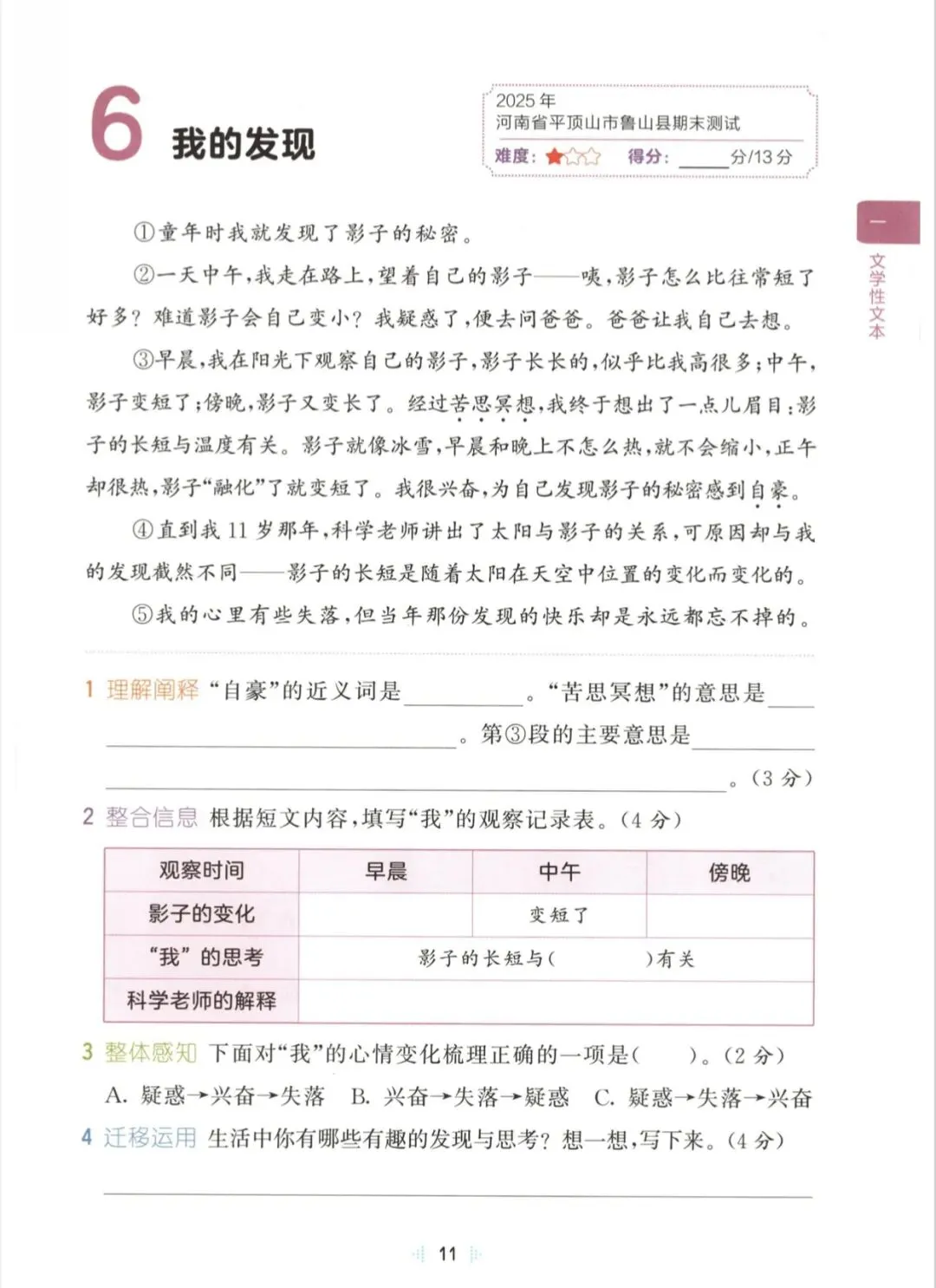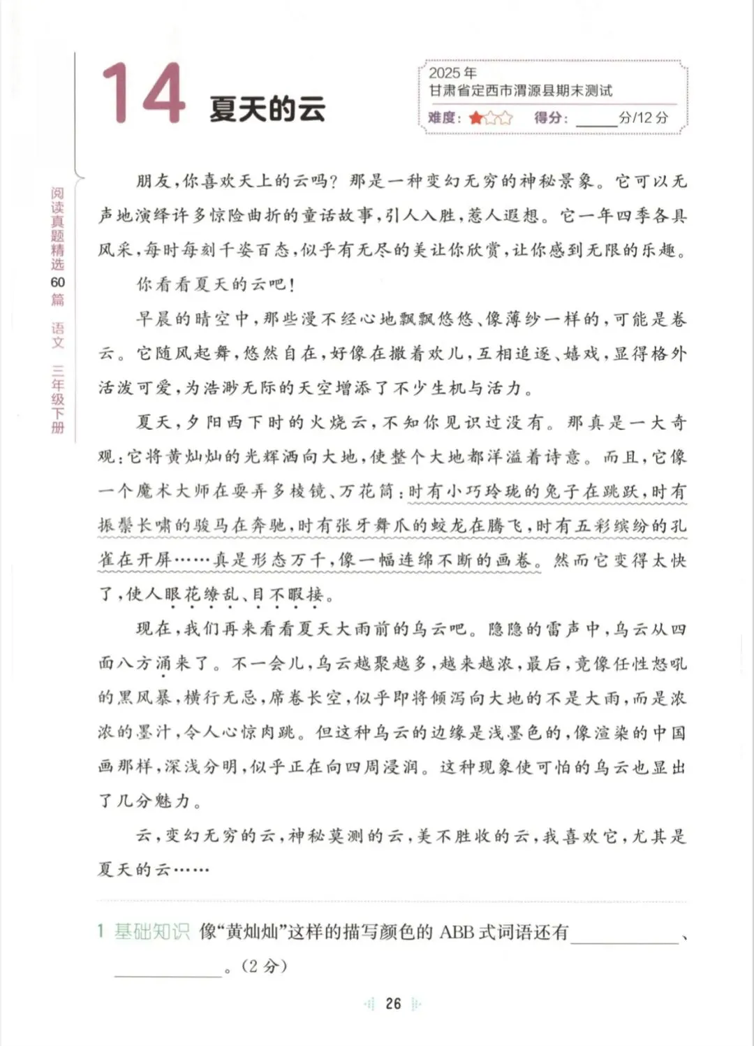 三年级下语文同步阅读训练|可打印