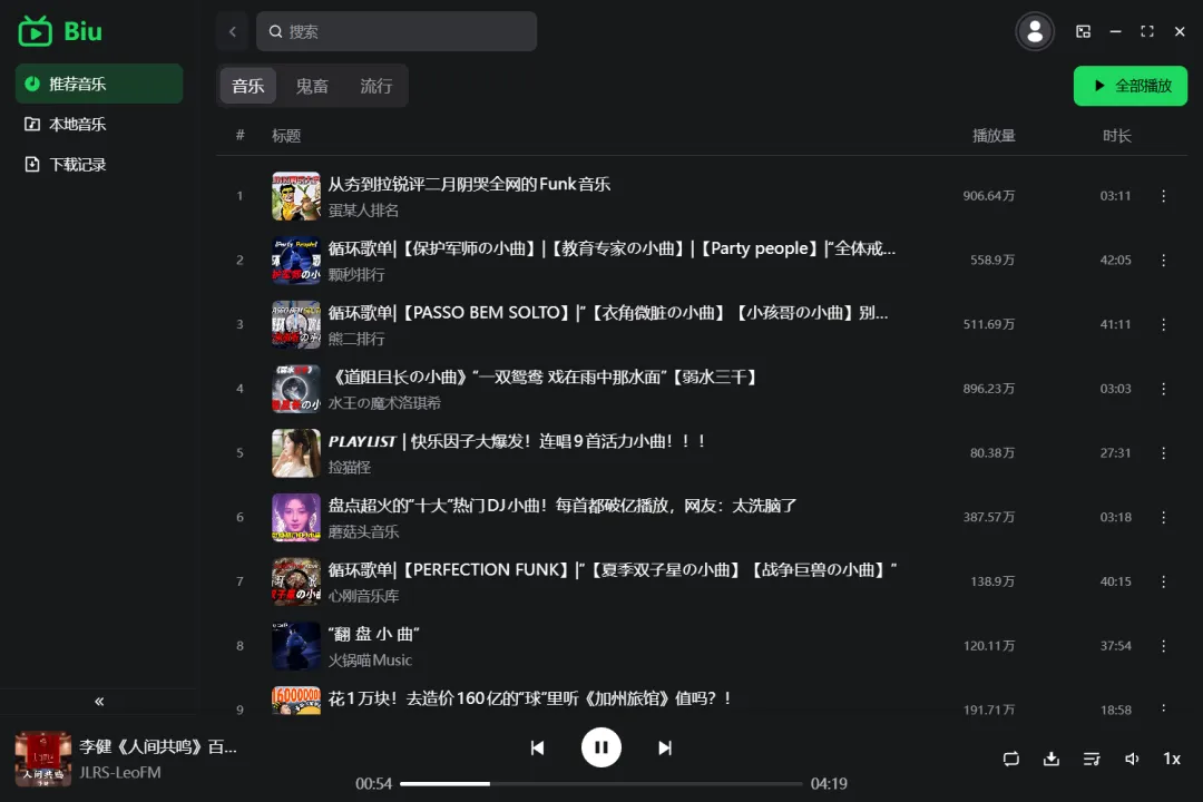 前几天有粉丝留言想要PC端音乐播放器,找了一圈都没稳定的,只有两款基于β哩公开接口开发的跨平台音乐播放器还行