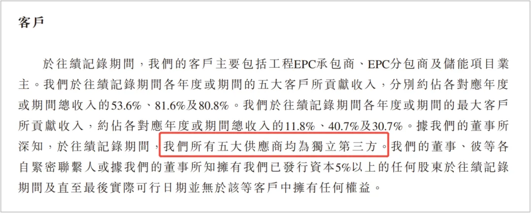 (远信储能在“客户”一栏中强调,“我们所有五大供应商均为独立第三方”,此处应为笔误,“五大供应商”应该是“五大客户”)